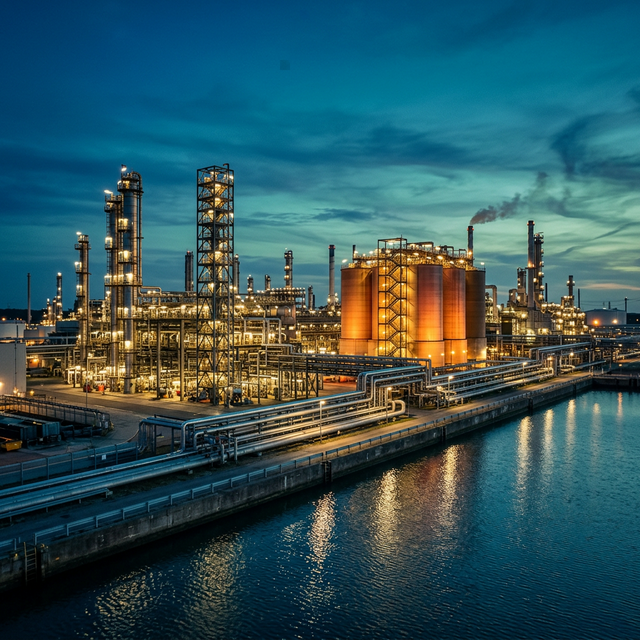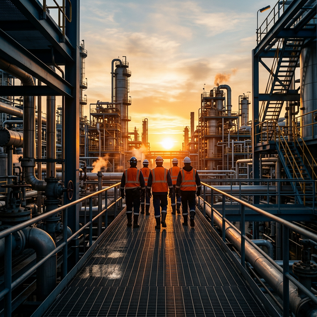 Refinación, petroquímica, gasoductos y plantas de procesamiento. Soluciones de infraestructura pesada con ingeniería de alto nivel.